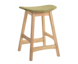 Škandinávska barová stolička Nordica Clara vo svetlo zelenom čalúnení s masívnou dubovou konštrukciou svetlo hnedej farby 62cm