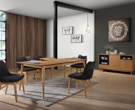 Moderná škandinávska jedálenská zostava Nordica Clara v svetlej hnedej prírodnej farbe s tmavými detailmi