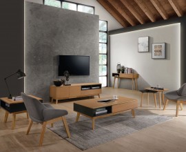 Moderná masívna obývacia zostava Nordica Clara v škandinávskom štýle z dubového dreva