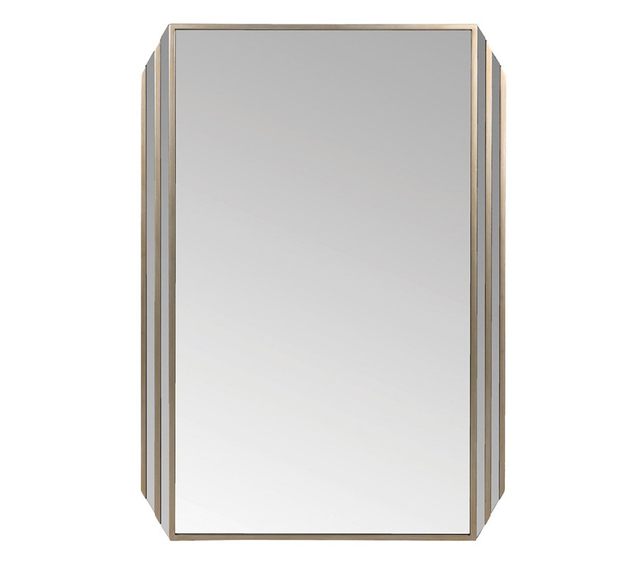 Dizajnové zrkadlo z kolekcie art-deco nábytku Venetia je štýlovým doplnkom, ktorý perfektne vynikne v moderných interiéroch s prvkami zlatej farby. Art-deco zrkadlo Venetia ponúka nadčasový dizajn, ktorý je dosiahnutý vďaka zaujímavému tvaru pripomínajúcemu osemuholník, a taktiež vďaka kovovému rámu v zlatej farbe. Spomenutý kovový rám taktiež doplní okraje v podobe dvoch priamych línií, čo oživí dizajn a podčiarkne art-deco štýlový vzhľad zrkadla. Moderné zrkadlo Venetia odporúčame kombinovať s lesklým moderným nábytkom, s nábytkom z kolekcie Venetia a taktiež s kovovými lampami a inými doplnkami v zlatých farbách.