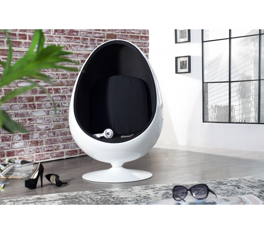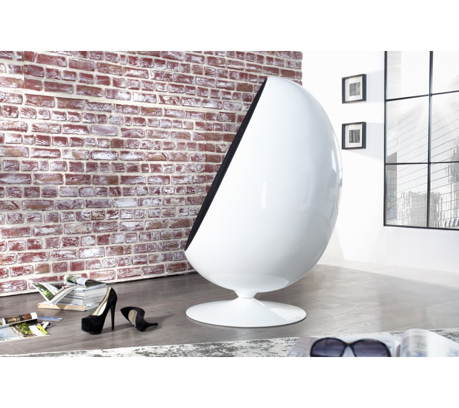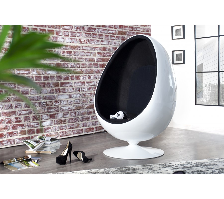 Luxusné elegantné kreslo Space Egg predstavuje absolútny vrchol dizajnu a skutočnú ikonu posledných desaťročí. Sedadlo a interiér sú vyrobené z čiernej látky s pridaným vankúšom na opierku chrbta. Obal kresla je zhotovený zo sklolaminátu v lesklej bielej farbe. Rozmery: 90 cm x 130 cm x 80 cm