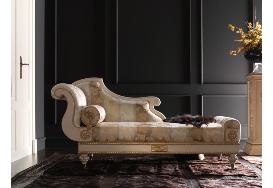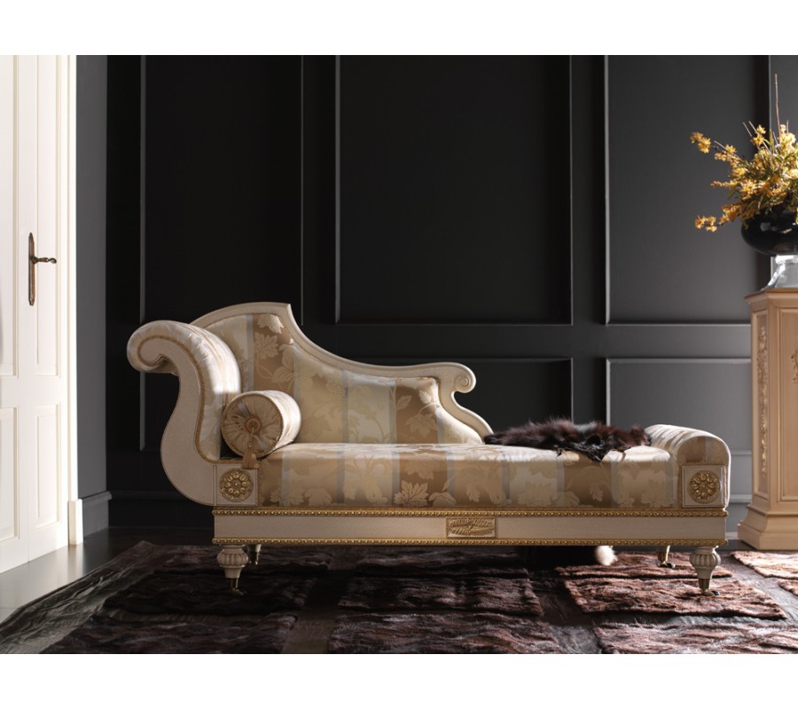 Luxusná leňoška s ručne vyrezávanými prvkami z kolekcie Argento, je špecifická pre svoj komfort, jemnosť a eleganciu. Kvalitné textílie, či kože zaraďujú nábytok do kat. 5-hviezdičkový s dlhoročnou trvácnosťou, z ktorého sa o niekoľko desiatok rokov určite stane starožitnosť so zachovanou kvalitou. V našom showroome je viac ako 200 vzoriek textílií a koží z ktorých je možné tento výrobok vyrobiť.