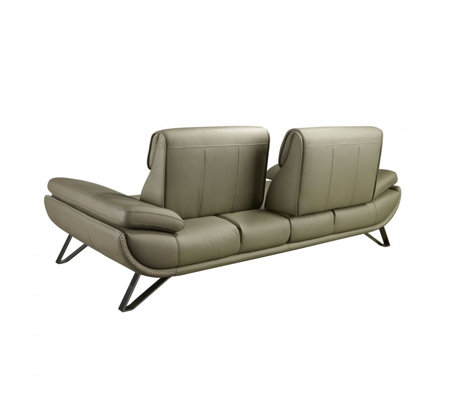 Luxusná moderná trojmiestna sedačka Vita Naturale s olivovo zeleným poťahom z pravej kože a polohovateľnou opierkou 225 cm