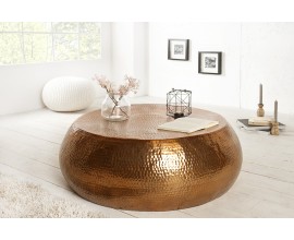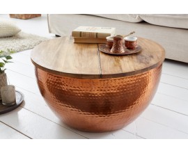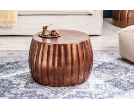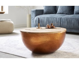 Dizajnový glamour tepaný medený konferenčný stolík Hammerblow v okrúhlom tvare z kovu s úložným priestorom 70 cm