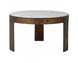 Art deco okrúhly príručný stolík Stone so zlatou kovovou doskou s vyvýšeným okrajom a asymetrickou mramorovou podstavou 60 cm