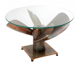 Koloniálny bronzový konferenčný stolík Helice II v tvare lodnej skrutky s okrúhlou doskou zo skla 60cm