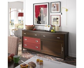 Vintage červený príborník Kolorida z masívu so siedmymi zásuvkami 250cm