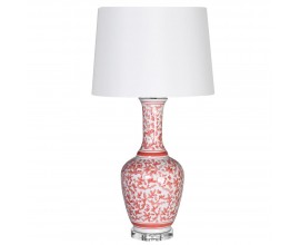 Keramická zdobená stolná lampa Rabia s červenými vzormi a bielym tienidlom 76cm