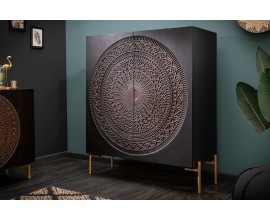 Štýlová masívna orientálna komoda Anilla z mangového dreva so zlatými kovovými nožičkami 105cm