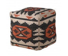 Orientálny dizajnový štvorcový taburet Darius s jutovým poťahom a perzským ornamentálnym vzorom 54 cm