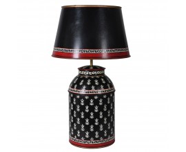 Dizajnová stolová etno lampa Maopo s čiernou kovovou podstavou a vzorovaným tienidlom z textílie v etno štýle 56 cm