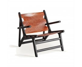 Luxusné vintage tehlovo červené kožené kreslo Huron s čiernymi drevenými nožičkami 82 cm