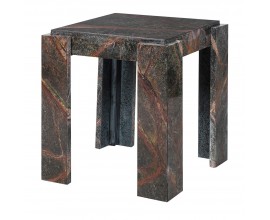 Dizajnový industriálny mramorový štvorcový príručný stolík Garen v čiernej farbe s červenými žilkami 52 cm