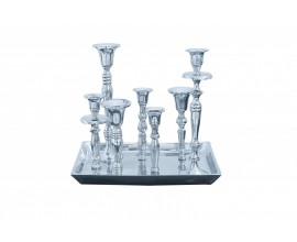 Dizajnový art-deco trojposchodový etažér zákusky Evana z kovu striebornej farby 44cm
