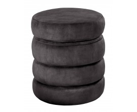 Dizajnová tmavá sivá taburetka Modern Barock okrúhleho tvaru v glamour štýle so zamatovým poťahom s úložným priestorom 50cm