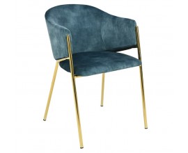 Dizajnová art deco jedálenská stolička Sionna s petrolejovo modrým zamatovým poťahom a zlatými kovovými nožičkami 77 cm