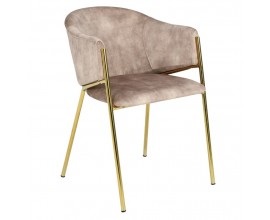 Moderná art deco béžová jedálenská stolička Sionna s opierkami na ruky so zamatovým poťahom a zlatými nohami 77 cm