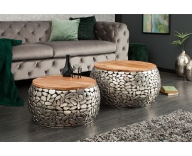 Extravagantný set dvoch konferenčných stolíkov Riverstone strieborná