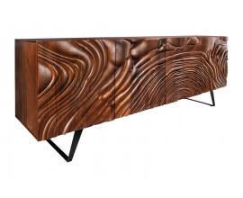 Dizajnový art deco štvordverový TV stolík Arkline v svetlom hnedom orechovom prevedení s čiernymi kovovými detailmi 180 cm
