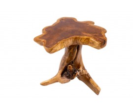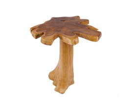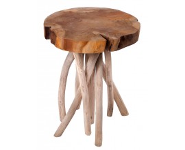 Dizajnový etno hnedý masívny asymetrický príručný stolík Root z teakového dreva 60 cm