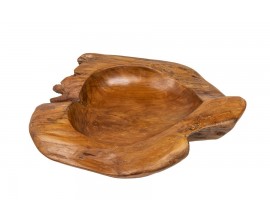 Dizajnová etno masívna misa na ovocie Kory z teakového dreva v hnedej farbe v nepravidelnom okrúhlom tvare 50 cm