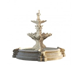 Luxusná antická kamenná fontána Antic Rome na záhradu pieskovej hnedej farby s bohatým figurálnym zdobením 216cm