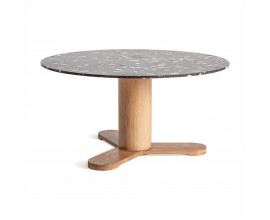 Art deco okrúhly jedálenský stôl Budhir z kameňa čierny 150cm