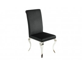 Štýlová klasická zamatová moderná jedálenská stolička Modern Barock s chrómovými striebornými nožičkami a čiernym poťahom 106 cm