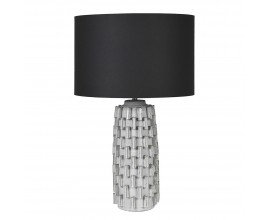 Luxusná moderná stolová lampa Milan s chrómovou podstavou a tienidlom so vzorom rybej kosti sivá 71 cm