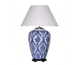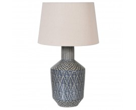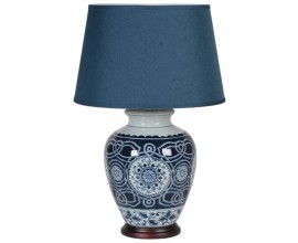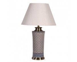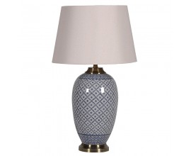 Etno porcelánová modro-biela stolná lampa Feyre s geometrickou kresbou a béžovým tienidlom 72cm