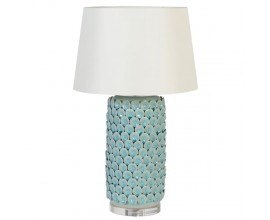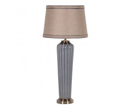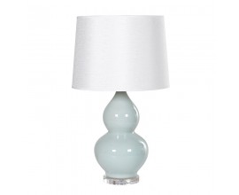 Vintage keramická stolná lampa Jasper s porcelánovou podstavou v svetlomodrej farbe s bielym textilným tienidlom 60cm