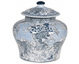 Orientálna modrá nádoba Rongi z porcelánu s tradičným dekoratívnym vzorom čínskeho kapra 38cm