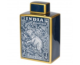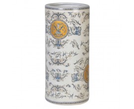 Štýlový klasický valcový stojan Renes na dáždniky z porcelánu s ornamentálnou maľbou v modrej a zlatej farbe 46 cm