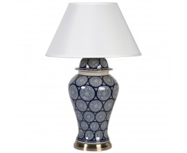 Vintage porcelánová modro-biela stolná lampa Alta s jemnou ornamentálnou kresbou a podstavou zlatej farby 73cm