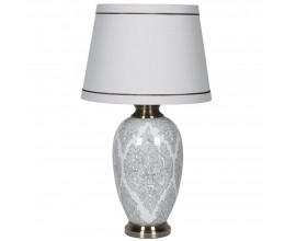 Vintage porcelánová sivo-biela stolná lampa Selena s jemnou ornamentálnou kresbou a metalickou podstavou 77cm