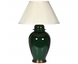 Art deco vysoká porcelánová zeleno-biela stolná lampa Grande s podstavou zlatej farby a riaseným tienidlom 89cm