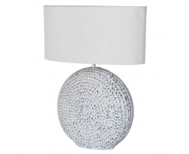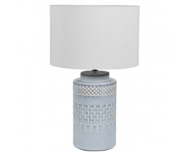 Vintage stolná lampa Emylou s okrúhlou porcelánovou podstavou s reliéfnym zdobením a s bielym oválnym tienidlom 66cm