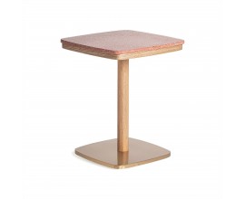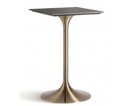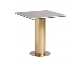 Luxusný art deco štvorcový zlatý barový stôl Boas s valcovou nohou a porcelánovou bielou doskou s mramorovým efektom 76 cm
