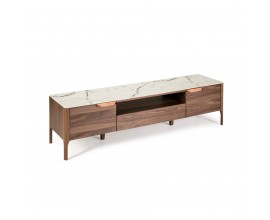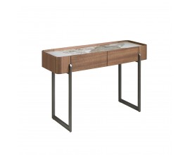 Luxusný moderný konzolový stolík Vita Naturale z hnedého orechového dreva s vrchnou doskou s dizajnom bieleho mramoru 120 cm