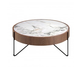 Luxusný moderný okrúhly hnedý konferenčný stolík Vita Naturale z orechového dreva s vrchnou doskou s mramorovým dizajnom 81 cm