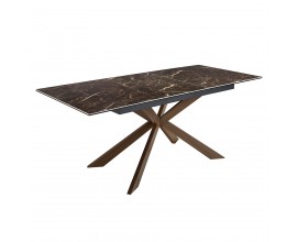 Moderný industriálny obdĺžnikový jedálenský stôl Marbleux s grafitovou čiernou rozkladacou doskou a kovovou podstavou 200 cm