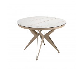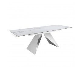 Moderný dizajnový rozkladací jedálenský stôl Marbleux s doskou s dizajnom bieleho mramoru a čiernymi prekríženými nohami 200 cm