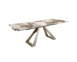Luxusná jedálenská zostava Forma Moderna v hnedých zemitých tónoch s rozkladacím mramorovým stolom a čalúnenými stoličkami
