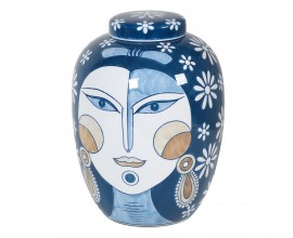 Vintage dekoračná porcelánová nádoba Ormond s vkusným vekom zdobená modrými florálnymi výjavmi s krakelé glazúrou 73cm