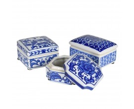 Dizajnová sada troch dekoratívnych porcelánových šperkovníc Admiral vo vintage štýle v modrej a bielej farbe 10 cm