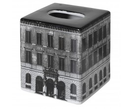 Moderný keramický štvorcový box Bawnd na vreckovky v bielo čiernej farbe s historickým motívom 15 cm