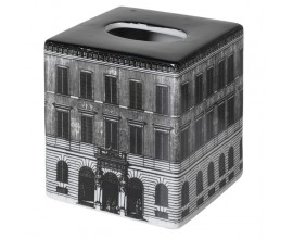 Dizajnový vintage box na vreckovky New York s motívom tehlovej budovy v čiernej a bielej farbe z porcelánu 15 cm