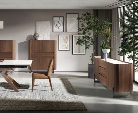 Luxusná moderná jedálenská zostava Vita Naturale v orechovej hnedej farbe s bielym mramorovým akcentom