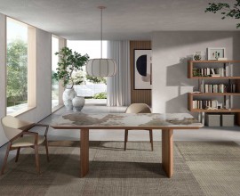 Luxusná moderná zostava jedálenského nábytku Vita Naturale z masívneho dreva v orechovej hnedej farbe s mramorovým akcentom