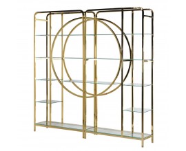 Art deco konferenčný stolík Oxidia so zlatou kovovou konštrukciou s efektom oxidácie a sklenenou povrchovou doskou 122cm